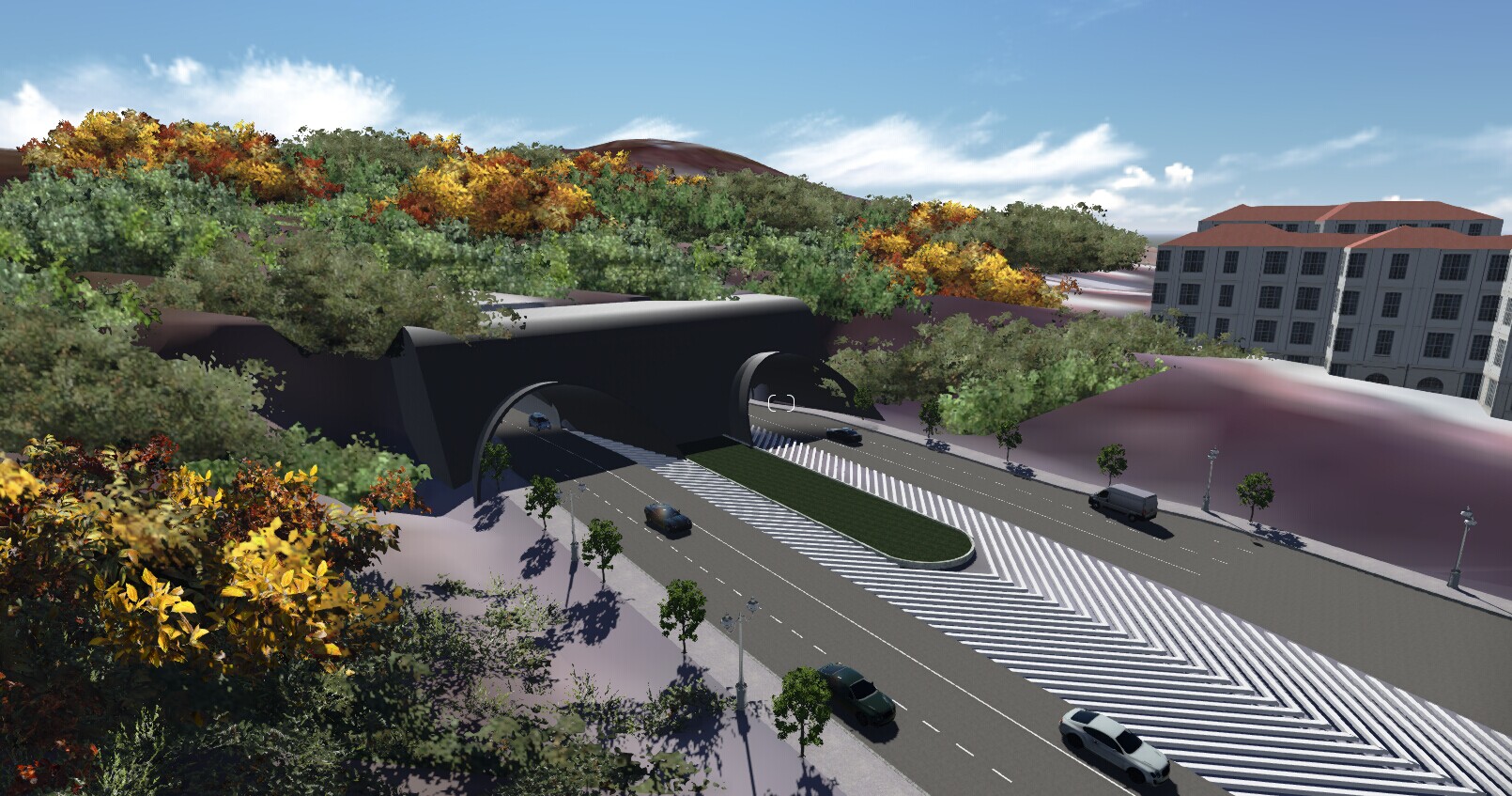 蘑菇视频规模:本项目位于青岛市黄岛区嘉陵江路与长白山路交叉口,交叉口距离宋山隧道西侧出入口约100m处。嘉陵江路为城市主干道,车行道宽度24m。交叉口南侧长白山路现状为沥青路面,车行道宽度为10m;交叉口北侧长白山路现状为碎石路面。道路等级及设计车速:嘉陵江路主干路(远期快速路)、40km/h(60 km/h);长白山路次干路、20 km/h。设计年限:路面结构设计使用年限15年,地下通道及桥梁结构设计使用年限100年;荷载标准:路面结构算荷载BBZ-100型标准车;车道宽度:交叉口没车道≥3.25m;桥涵设计荷载:城-A级;抗震标准:桥涵抗震基本烈度为6度,地震动峰值加速度为0.05g。